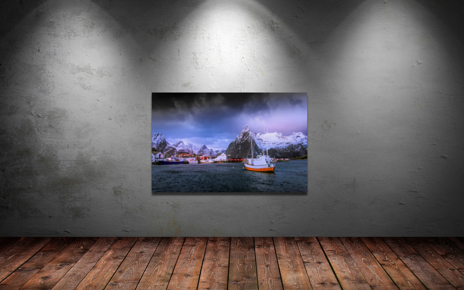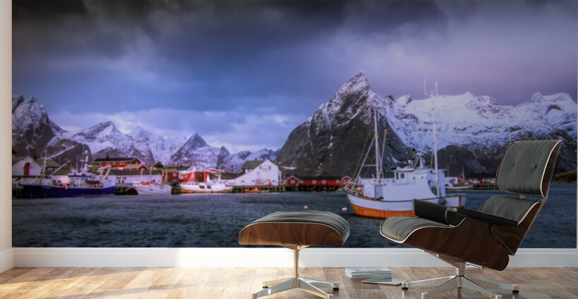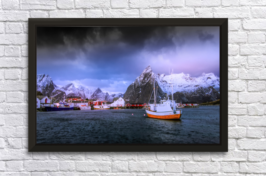 Get this artwork "Snowy Hamnoy Norwegian Fishing Village" in a framed print.