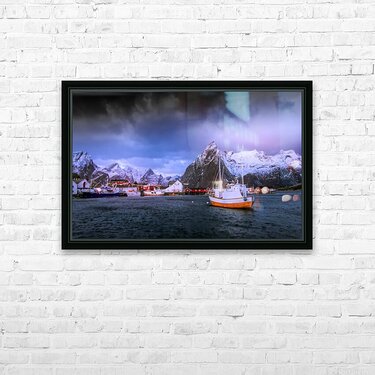 Snowy Hamnoy Norwegian Fishing Village Picture Frame Printing