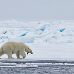 A polar bear rests at the edge of the polar ice cap, surrounded by an expanse of soft white that seems to stretch without a boundary. The scene feels ...[+]