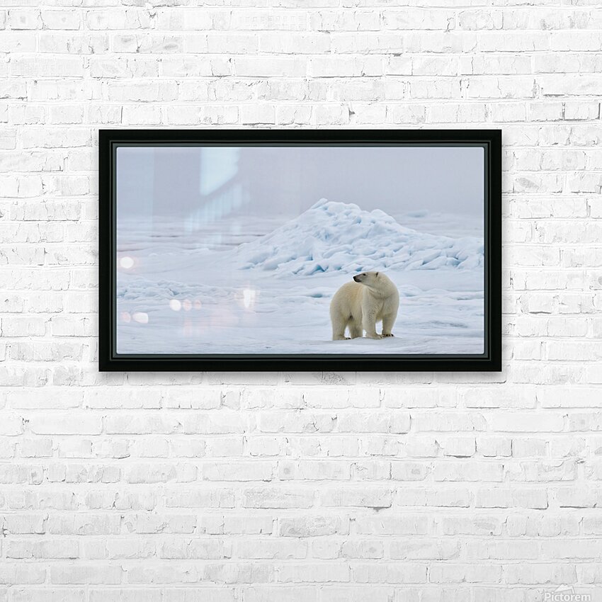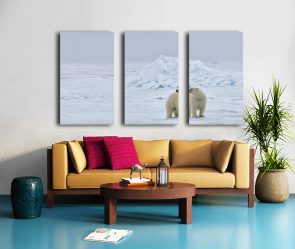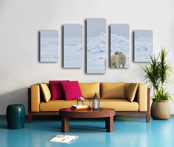 A polar bear rests at the edge of the polar ice cap, surrounded by an expanse of soft white that seems to stretch without a boundary. The scene feels almost weightless. The bear’s calm posture and steady gaze create a gentle focal point in all that openness, giving the image a sense of balance and quiet strength. There’s something soothing about the simplicity here. The empty space isn’t empty at all; it feels like Arctic air, cold light, and the kind of silence you only find far from everything. As a print, it brings a calm, modern look to a room and adds a touch of wild Arctic beauty without overwhelming the space.