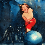 Row One's mixed media painting shows a woman bowling in 1947. This beautiful bowling art will look great in your home or office. Derivative art ©...[+]