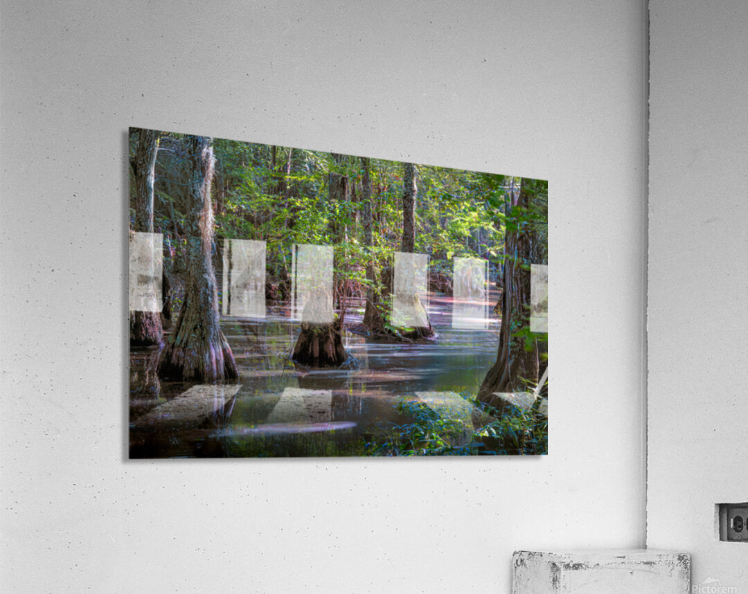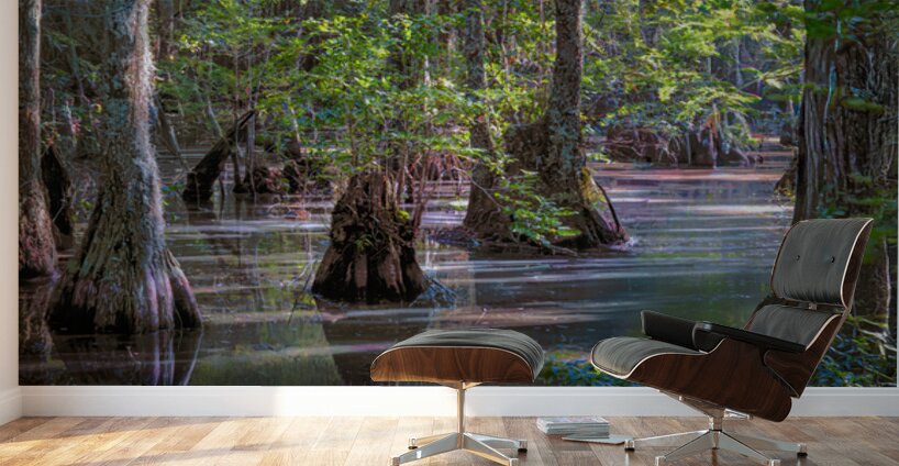 Get this artwork "Serene Swamp Landscape with Cypress Trees" in a framed print.