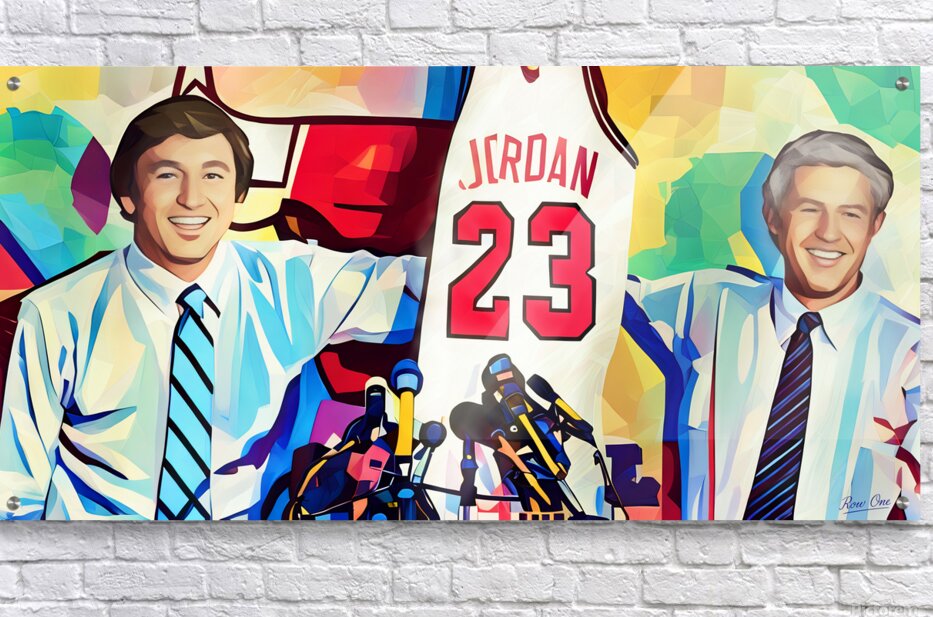This Row One Brand Michael Jordan Pop Art Mixed Media Painting shows Michael Jordan's first jersey with the Chicago Bulls. This beautiful and colorful sports art from Row One will always be a conversation piece. Derivative art © 2025 Row One Brand
