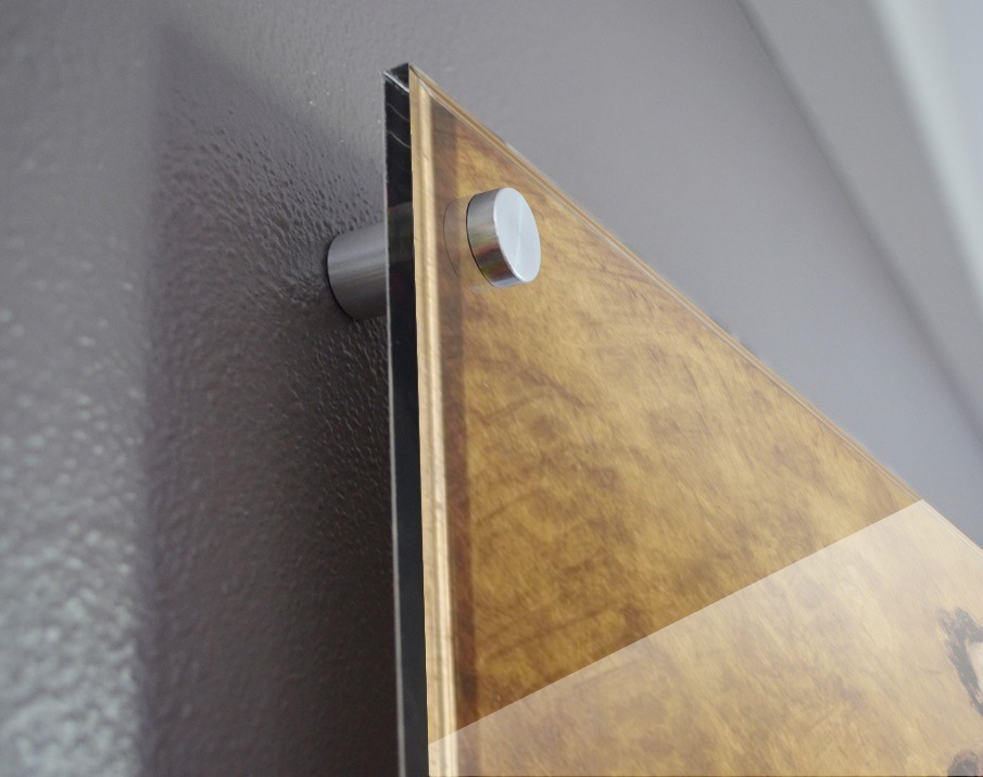 Printed to the edge - Ready to hang - provided with 4 premium polished aluminum stand off ( wall screws and mounting hardware provided )