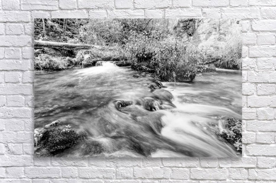 ABOUT THIS ARTWORK: AUTUMN CASCADES AT OZARKS GREER SPRING GRAYSCALE