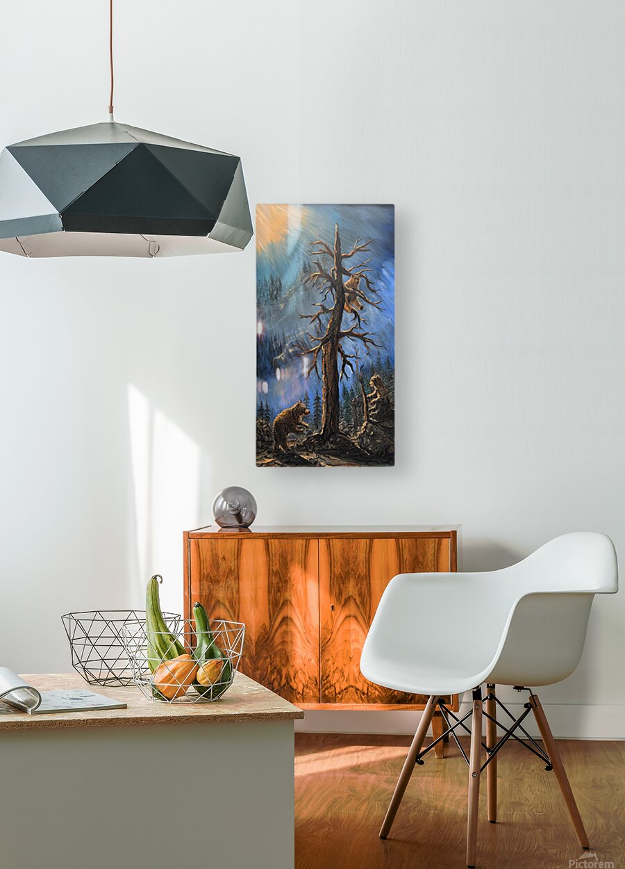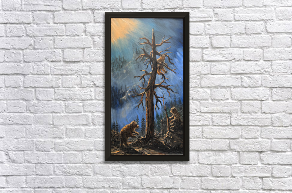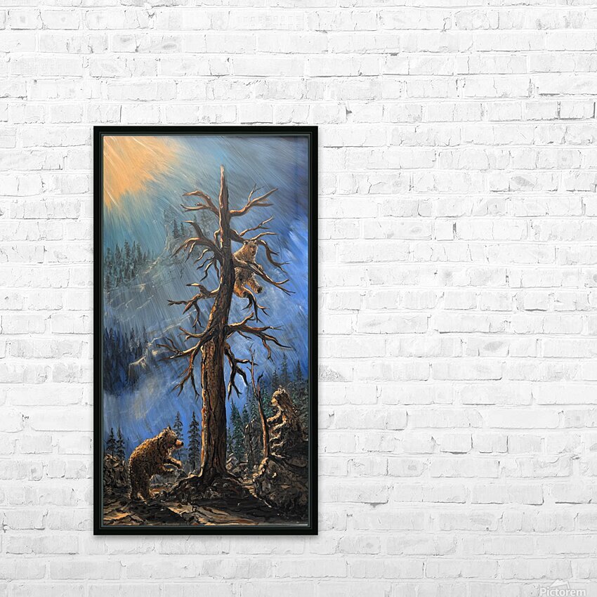 IMG 4215  Three bears playing in a tall pine tree HD Sublimation Metal print with Decorating Float Frame (BOX)