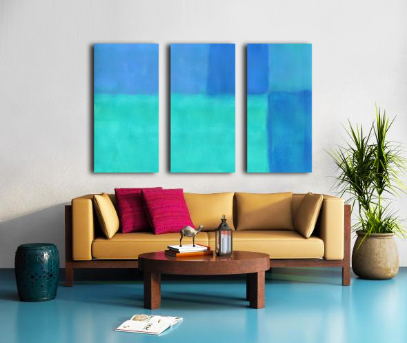 Summer blue 1 is an abstract acrylic painting in vibrant refreshing shades of teal and blue. This is the horizontal version. A vertical version is also available - summer blue 2. Fine art prints and home decor from original artwork by artist Karen Kaspar. s6