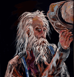Old cowboy holding his hat up 23~12” x 22~12” 0il on wood original by Les Smith