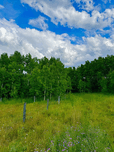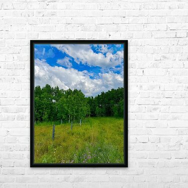 Wild flowers and aspen trees clouds opening up to blue sky. Original photograph by les smith