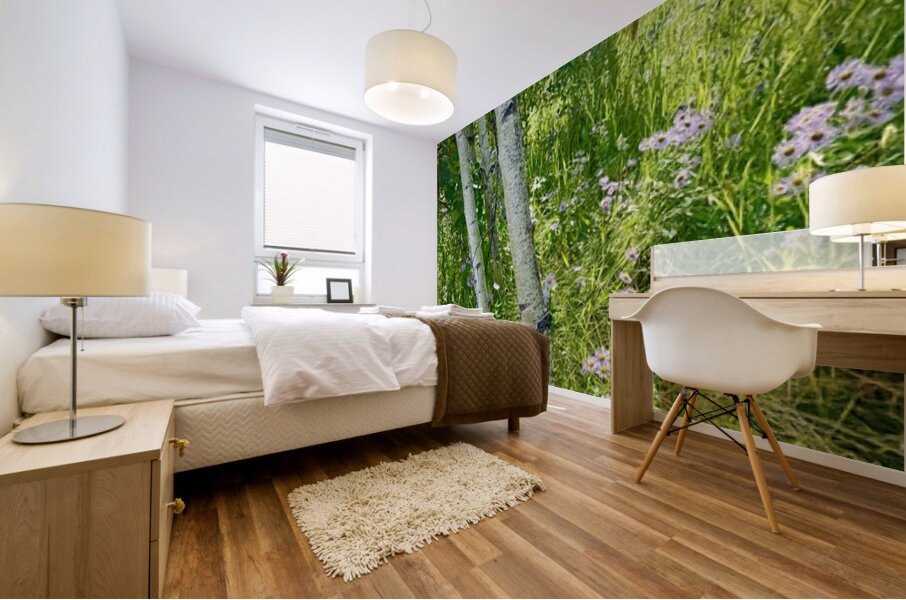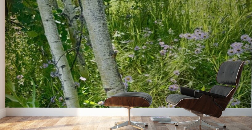 IMG aspen trees  and purple flowers Wood print