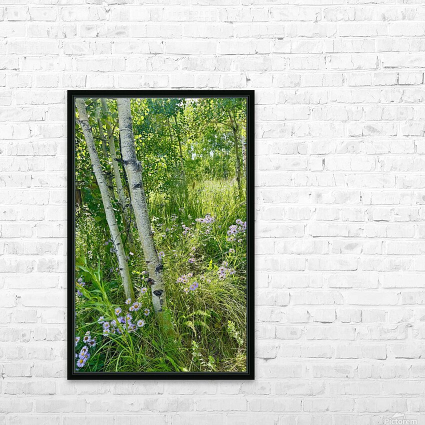 IMG aspen trees  and purple flowers HD Sublimation Metal print with Decorating Float Frame (BOX)
