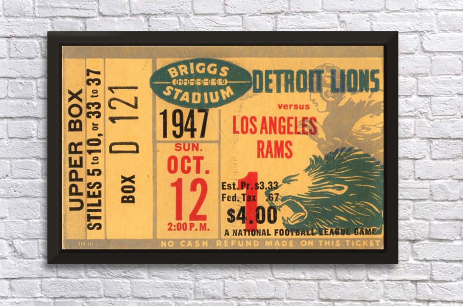 1947 LA Rams at Detroit Lions Ticket Art Wall Decor Frame
