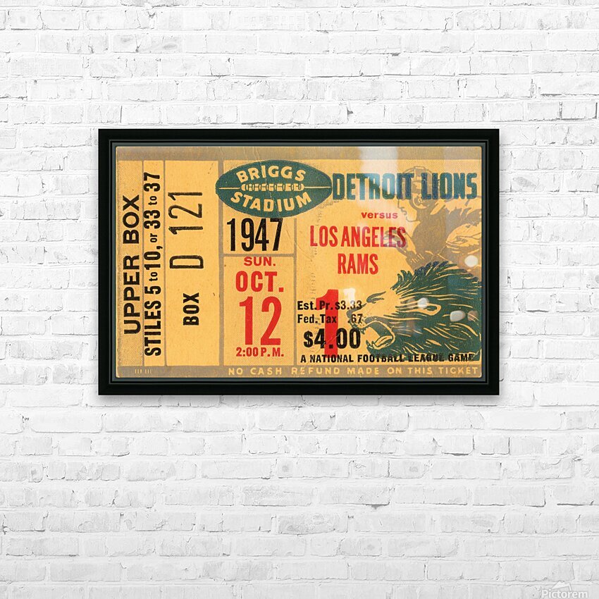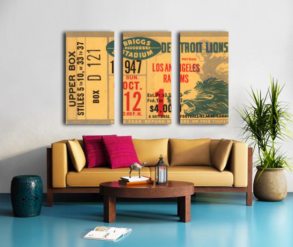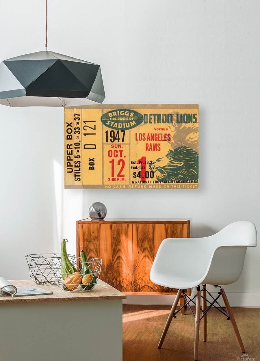 This Row One Brand 1947 LA Rams at Detroit Lions football ticket wall art will look wonderful in your home or office. This is an art reproduction crea...[+]