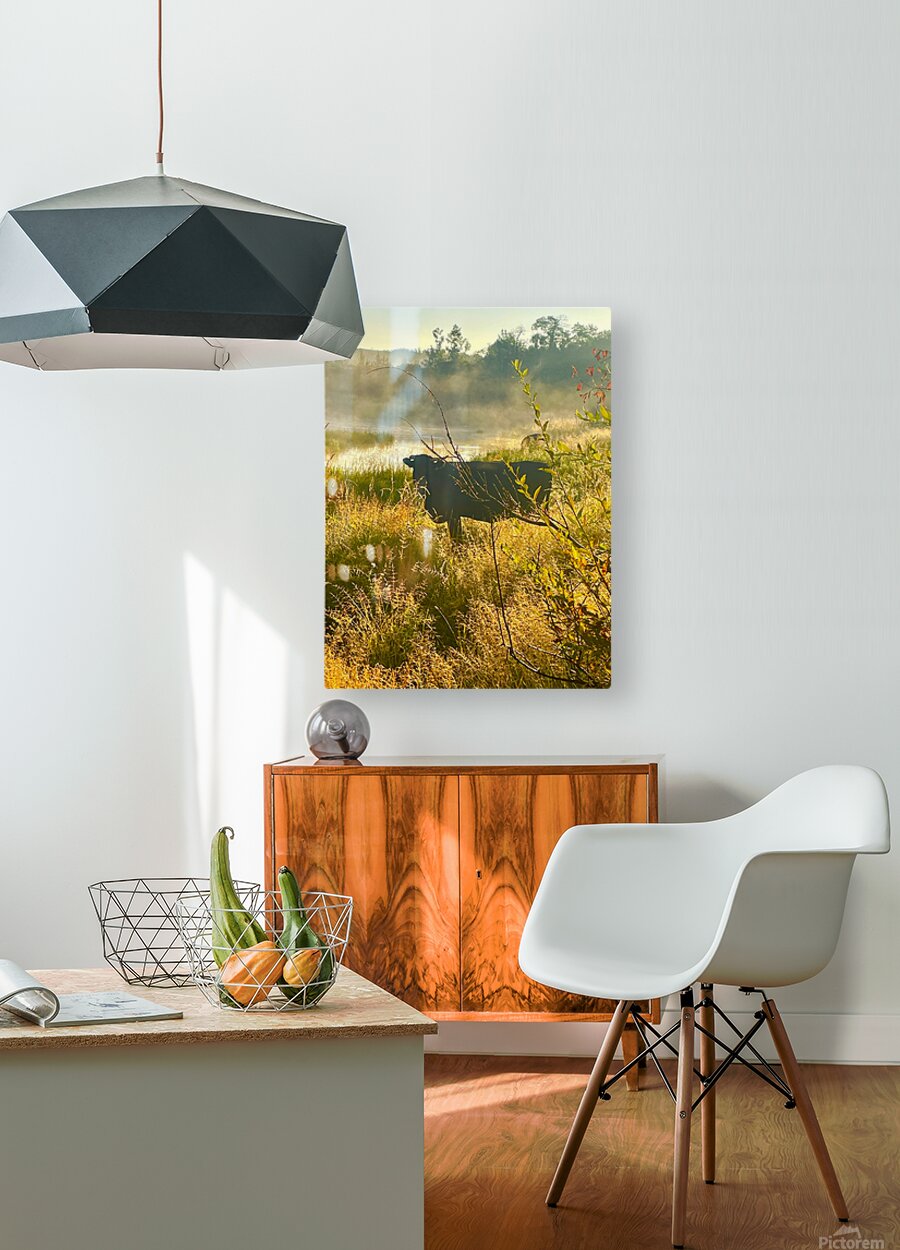 IMG 2179 Black cow Silhouette At sunrise  HD Metal print with Floating Frame on Back