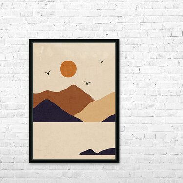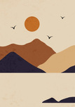Day and night mountain texture landscape poster set Modern boho background with sun and mountains, minimalist wall decor.