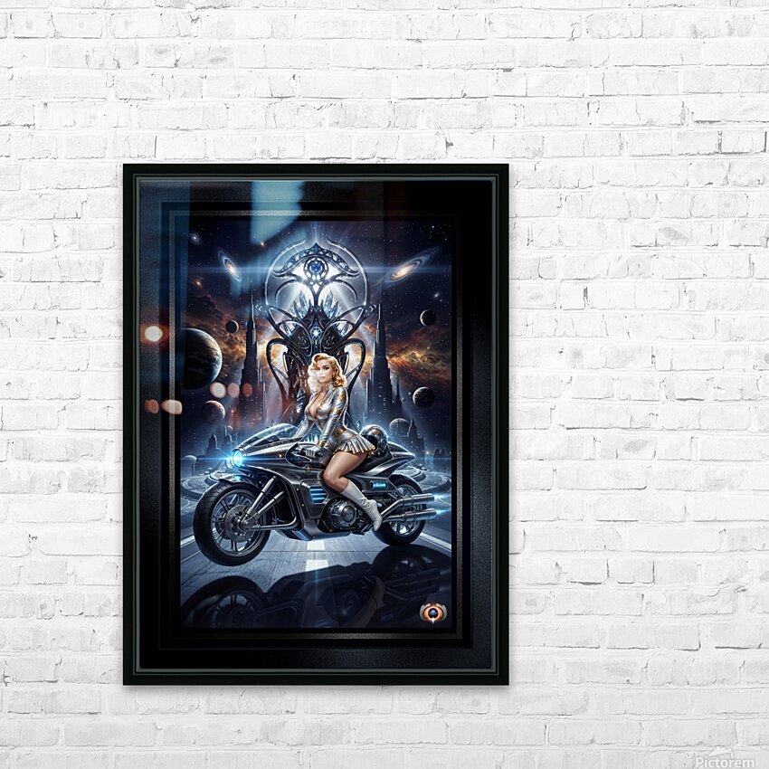 Cosmic Rider Lysandra Valtor Atop Aethelion Spire Mesmerizing AI Concept Art by Xzendor7 Picture Frame Printing