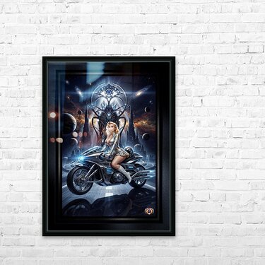 Lysandra Valtor sits regally on her Aethelion Spire motorcycle, a masterpiece of chrome and star-metal engineering. Her silver bodysuit, detailed with...[+]