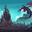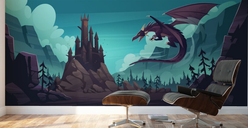 Mountain landscape with castle and dragon