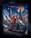 Urra Tyrlan Riding Her Deblenus Cr93721 Power Bike Portrait Gorgeous AI Concept Art by Xzendor7 Picture Frame Printing
