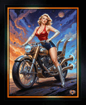 Chalyn Slavina commands the cosmos atop her custom Stellarion motorcycle, a gleaming chrome machine with glowing blue exhausts. Dressed in a red sequined halter top, blue leather shorts, silver gloves, and metallic boots, she embodies vintage glamour in an alien desert landscape. The sky above is a tapestry of deep blues, fiery nebulae, and ringed planets, evoking a sense of wonder and exploration. This digital painting blends classic pin-up aesthetics with retro-futurism, creating a striking image of confidence and adventure. Every detail—from the stitching on her shorts to the reflections in the headlight—is rendered with precision. The composition draws the eye from her poised stance down along the bike’s frame, emphasizing both human elegance and mechanical beauty. Perfect for those who appreciate sci-fi fantasy art with a touch of nostalgia. Read More At: https://xzendor7.com/cosmic-pin-up-chalyn-slavina-on-her-stellarion-cycle/