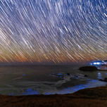 This long-exposure coastal nightscape captures the sweeping motion of the stars as they arc across the sky, recording Earth’s rotation over time. Th...[+]
