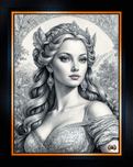 Lady Vaelorin Silvanius is portrayed in a stunning silver-embroidered gown with delicate floral patterns, her flowing hair adorned with an intricate leaf diadem. Her sapphire eyes stand out vividly against the otherwise monochrome palette, framed by an ornate circular lattice of vines and blossoms that evoke a divine halo. Behind her lies a softly rendered mountainous landscape beneath a hazy sky, suggesting distant valleys and ancient forests. The composition balances symmetry with natural flow, emphasizing her serene expression and regal posture. Crafted with precise digital illustration techniques, the artwork features fine linework, soft shading gradients, and subtle texture details in fabric and foliage. Every element from jewelry to gown is rendered with meticulous care, creating a timeless fantasy portrait of grace and harmony. Read More At: https://xzendor7.com/lady-vaelorin-silvanius-garden-of-valtoris-of-aerelon/