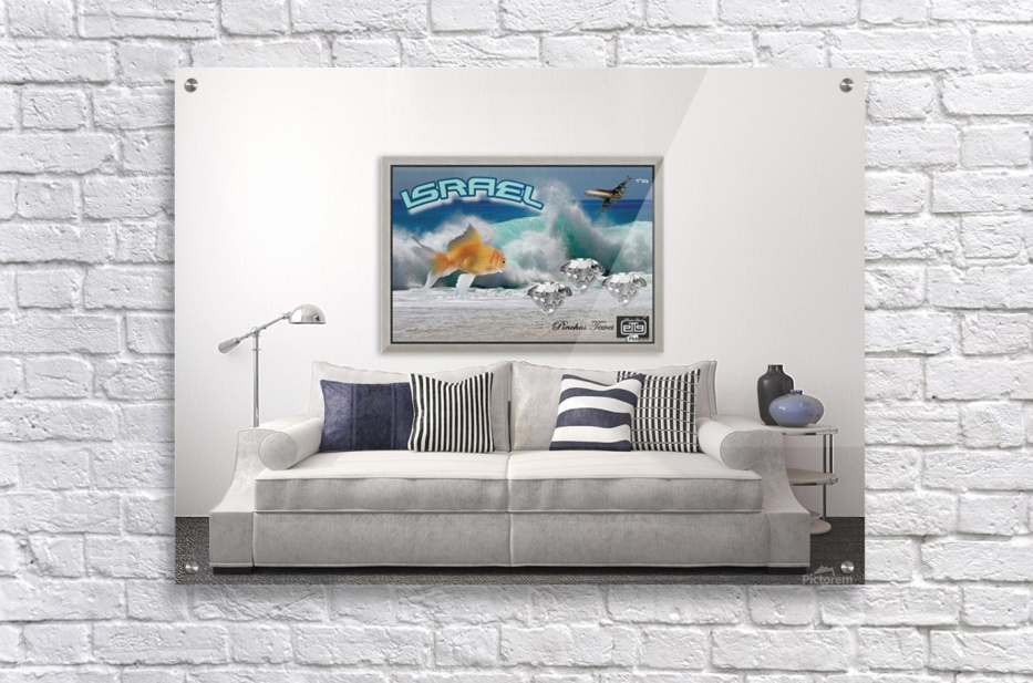 monogram art   israel ocean 1 FOR DSPLAY ONLY in room setting  HD Metal print with Floating Frame on Back