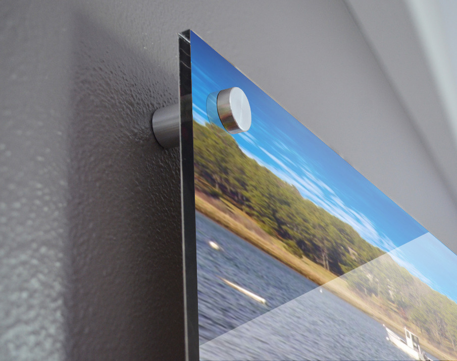 Printed to the edge - Ready to hang - provided with 4 premium polished aluminum stand off ( wall screws and mounting hardware provided )