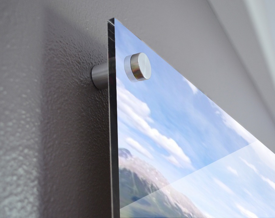Printed to the edge - Ready to hang - provided with 4 premium polished aluminum stand off ( wall screws and mounting hardware provided )