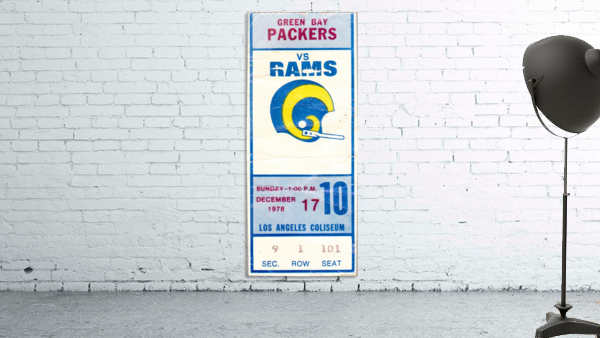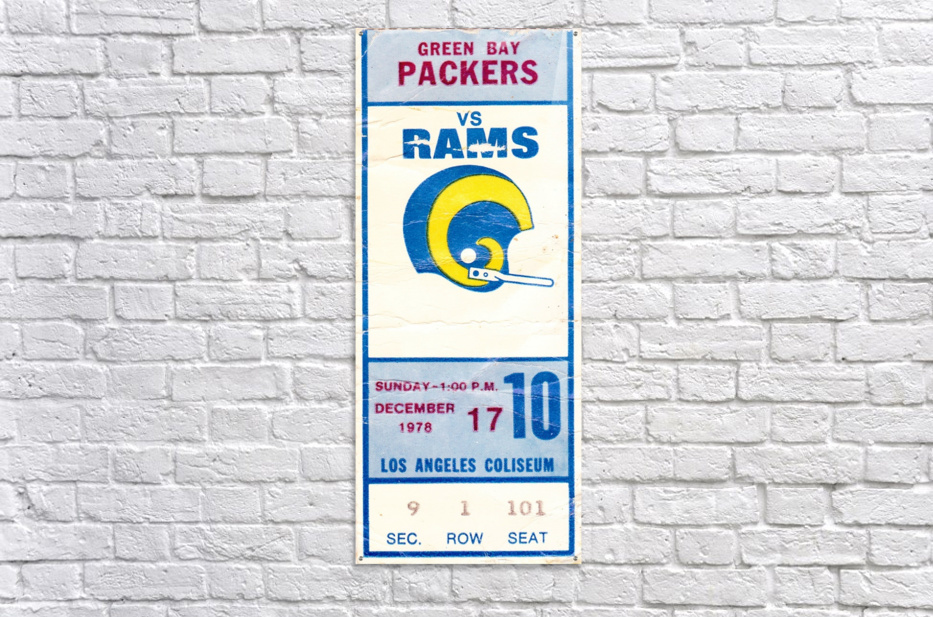 1978 Packers vs. LA Rams Football Ticket Art | Row One Brand | Over 17,000 Historic Sports Prints | The Rams won 31-14 over the Packers. LA finished 12-4 and won the NFC West. Row One Brand's historic sports ticket art prints are not affiliated with, licensed, sponsored, authorized, or endorsed by any pro team, league, artist, athlete, venue, or any licensing entity. Only non-copyrighted tickets are used by Row One Brand to create our historic ticket art prints.
