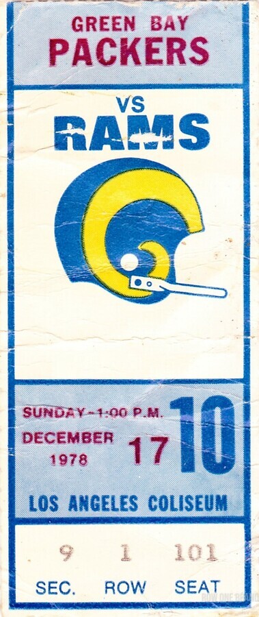 1978 GREEN BAY PACKERS VS. LA RAMS TICKET ART