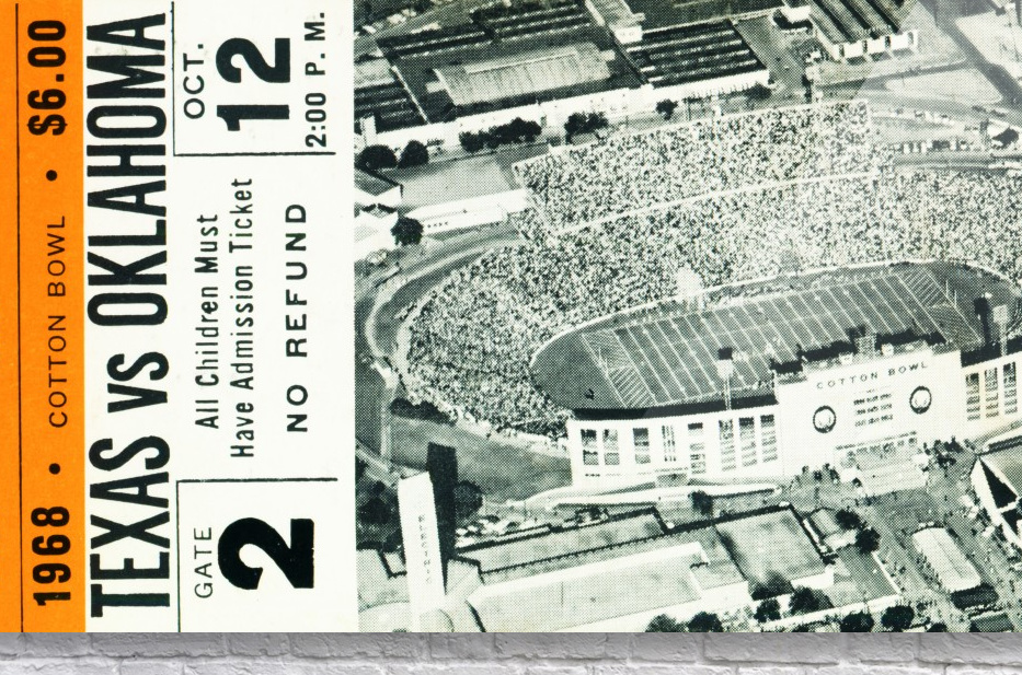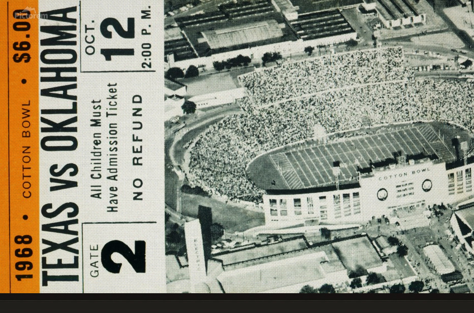 1968 TEXAS VS. OKLAHOMA FOOTBALL TICKET ART