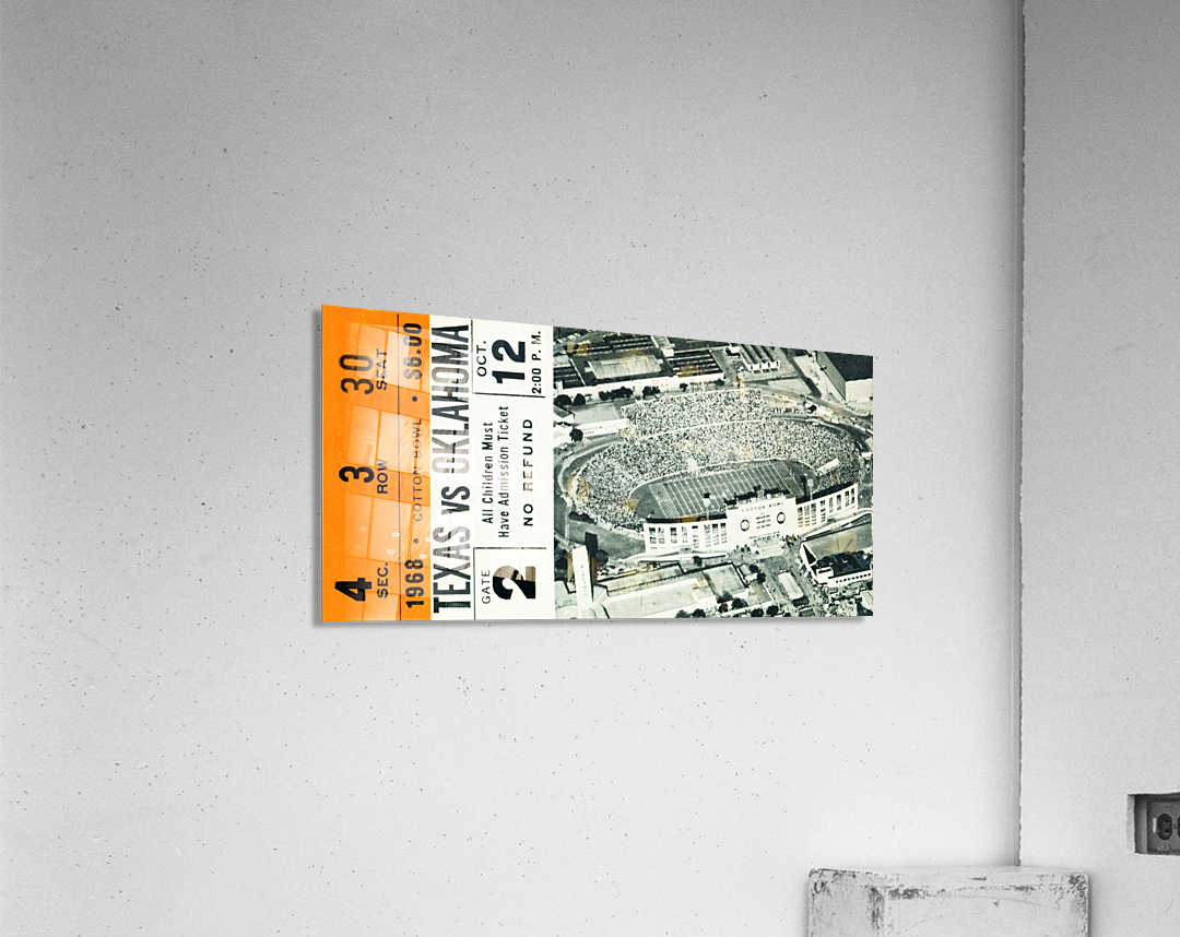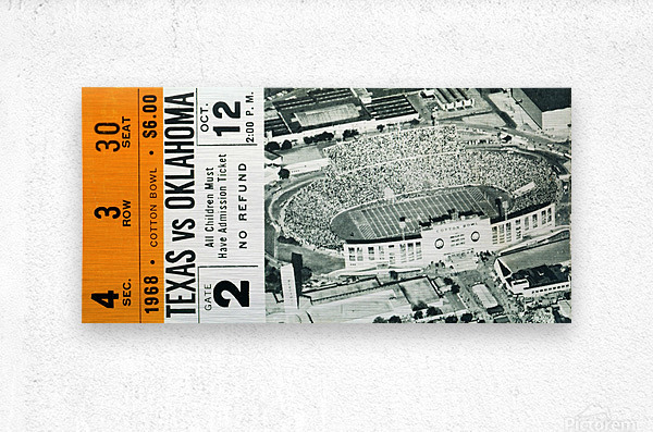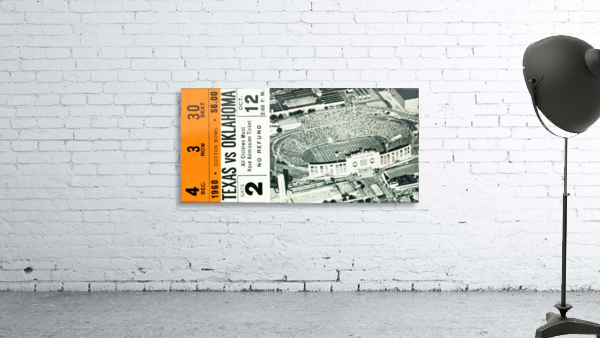 Get this artwork "1968 Texas vs. Oklahoma Football Ticket Art" in a framed print.