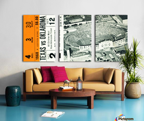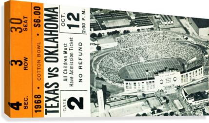1968 TEXAS VS. OKLAHOMA FOOTBALL TICKET ART ROW ONE BRAND  Canvas Print