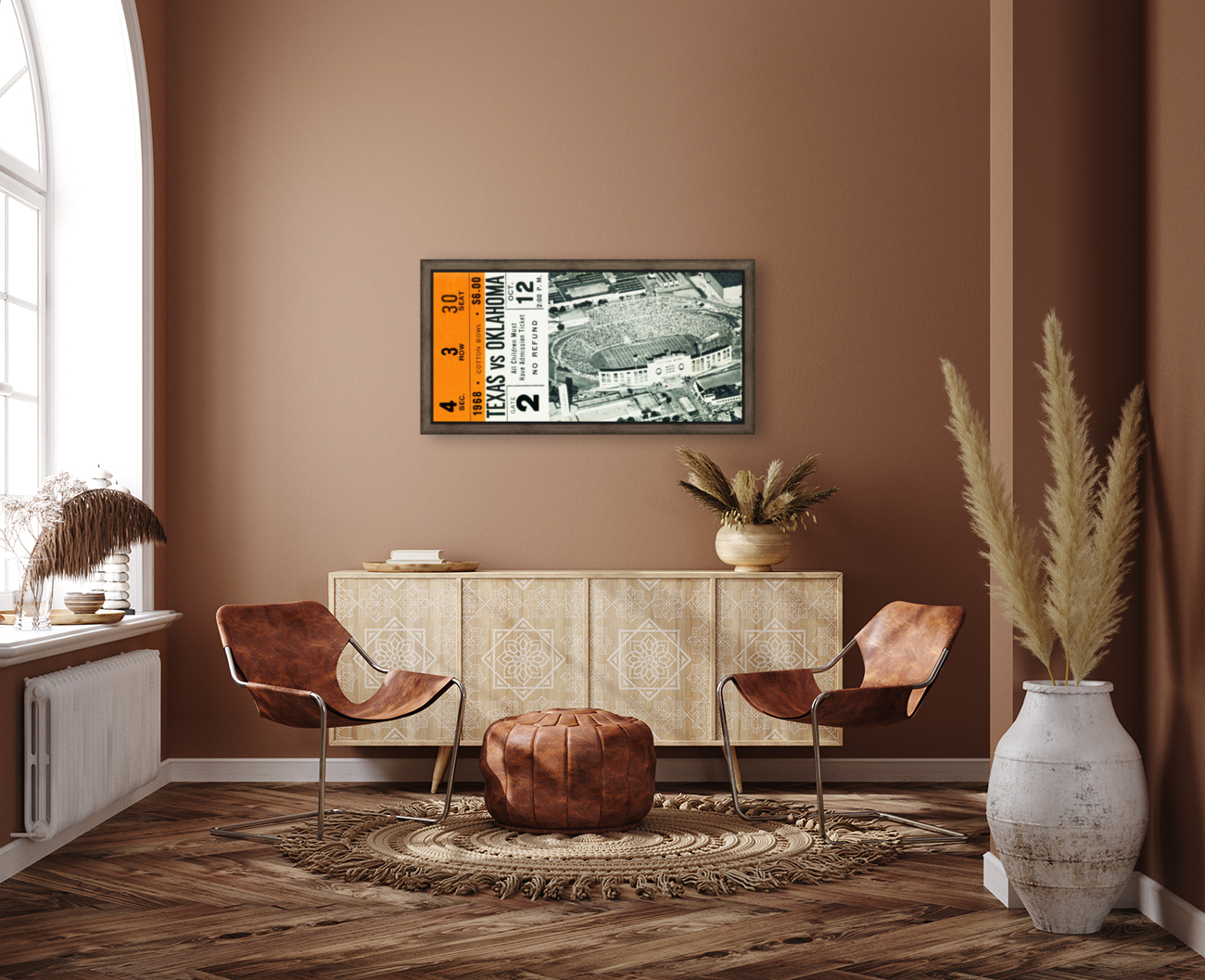 1968 Texas vs. Oklahoma Football Ticket Art Wall Decor Frame