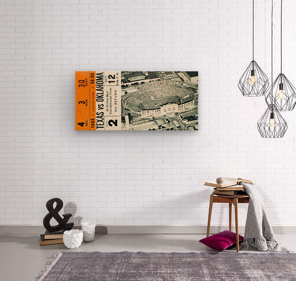 1968 Texas vs. Oklahoma Football Ticket Art  Wood print