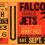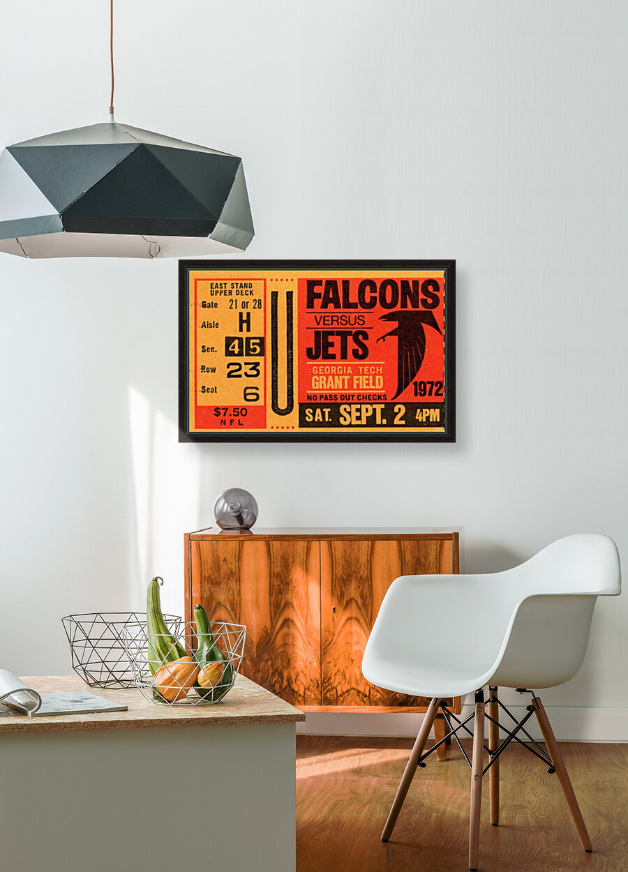 Get this artwork "1972 Atlanta Falcons vs. New York Jets Ticket Art" in a framed print.