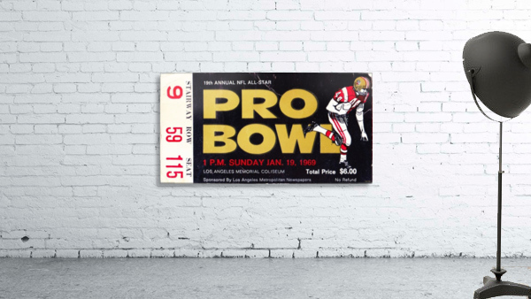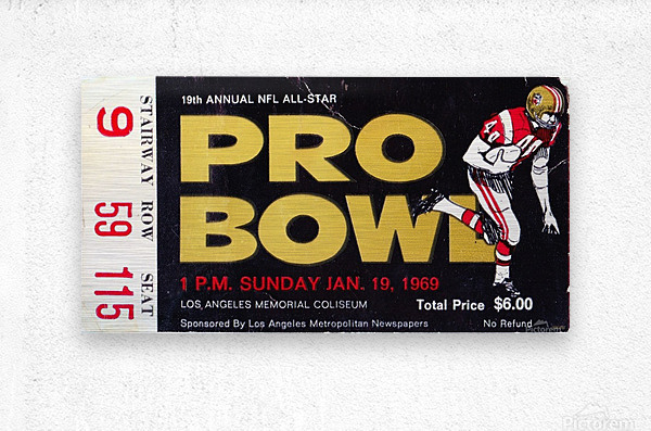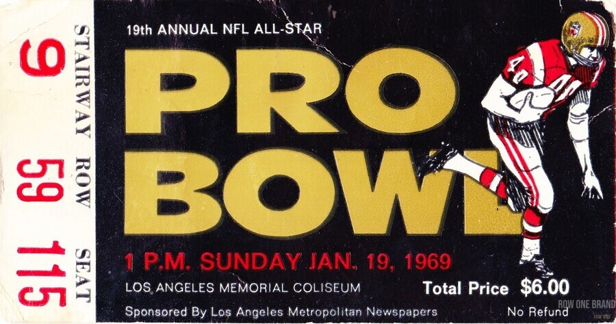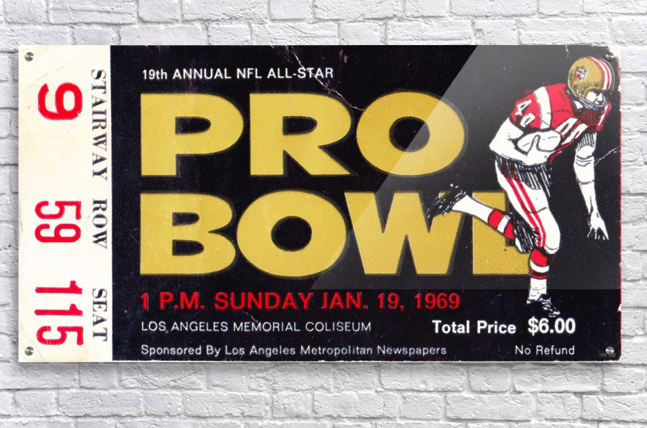 1969 Pro Bowl Ticket Stub Art | Row One Brand | Over 17,000 Historic Sports Prints | Row One Brand's historic sports ticket art prints are not affiliated with, licensed, sponsored, authorized, or endorsed by any college, university, pro team, league, artist, athlete, venue, or any licensing entity. Only non-copyrighted historic sports memorabilia is used by Row One to create our historic sports prints.