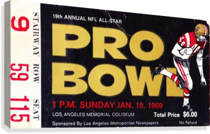 1969 PRO BOWL FOOTBALL TICKET ART ROW ONE BRAND  Canvas Print
