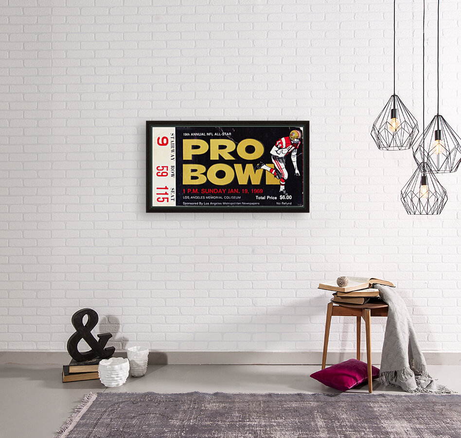 1969 Pro Bowl Football Ticket Art Wall Decor Frame