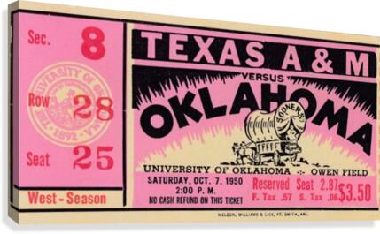 1950_College_Football_Oklahoma vs. Texas A&M_Owen Field_Row One Brand Ticket Stub Canvas print