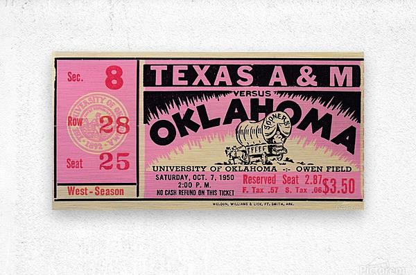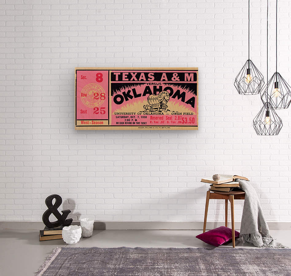 1950_College_Football_Oklahoma vs. Texas A&M_Owen Field_Row One Brand Ticket Stub Wood print