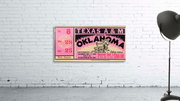 Get this artwork "1950_College_Football_Oklahoma vs. Texas A&M_Owen Field_Row One Brand Ticket Stub" in a framed print.