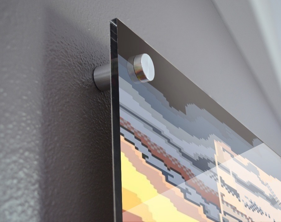Printed to the edge - Ready to hang - provided with 4 premium polished aluminum stand off ( wall screws and mounting hardware provided )