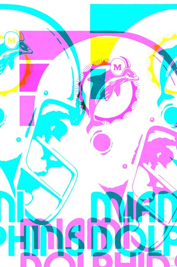 ABOUT THIS ARTWORK: NATIONAL FOOTBALL LEAGUE_RETRO MIAMI DOLPHINS FINE ART BY ROW ONE BRAND