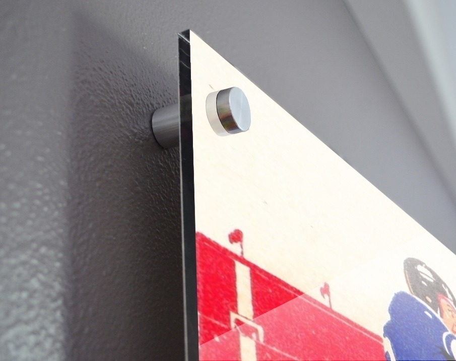 Printed to the edge - Ready to hang - provided with 4 premium polished aluminum stand off ( wall screws and mounting hardware provided )