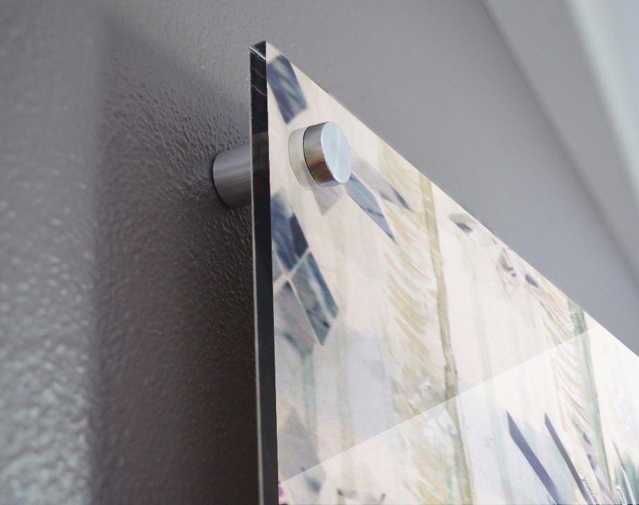 Printed to the edge - Ready to hang - provided with 4 premium polished aluminum stand off ( wall screws and mounting hardware provided )