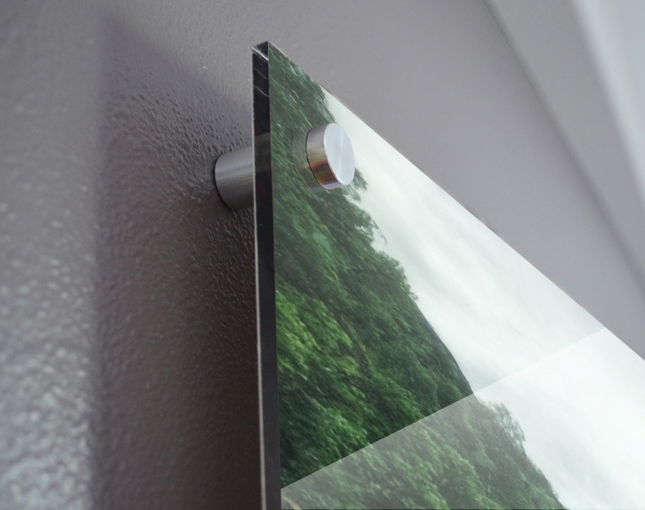 Printed to the edge - Ready to hang - provided with 4 premium polished aluminum stand off ( wall screws and mounting hardware provided )