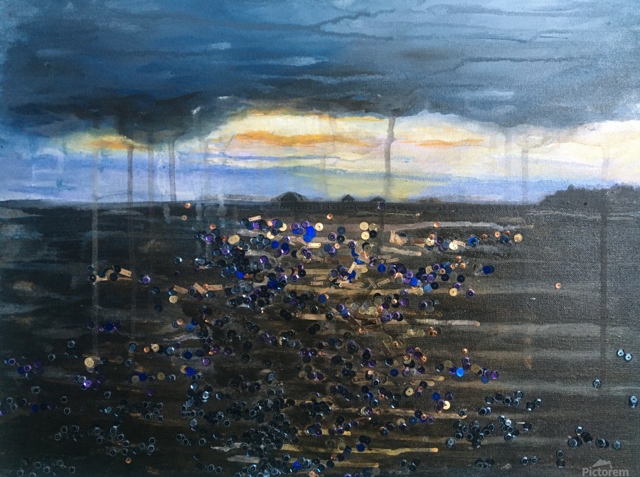 TINSTY is passionate about nature, and the deep, reflective thought that it allows. Her multimedia creations include paintings and fabric embellished canvas’ that feature recycled and found materials. Aiming for the intersection of beauty and perception, the work is meant to encourage the awareness of environmental impermanence, and how this fleeting beauty is due, in part, to climate change. As an avid scuba diver, the artist has the unique opportunity to examine the ecosystem of the oceans up close, to observe first-hand the destruction to vital coral reefs caused by industrial waste, and microplastics, in particular. The use of recycled sequins and beads alludes to the ocean as a precious and delicate luxury, while also reminding the viewer of the disproportionate damage these minuscule man-made trifles and seemingly insignificant, harmless tiny objects can cause to our largest, and perhaps most delicate, ecosystem. https://thingsineversaidtoyou.wordpress.com/ for more infomation.