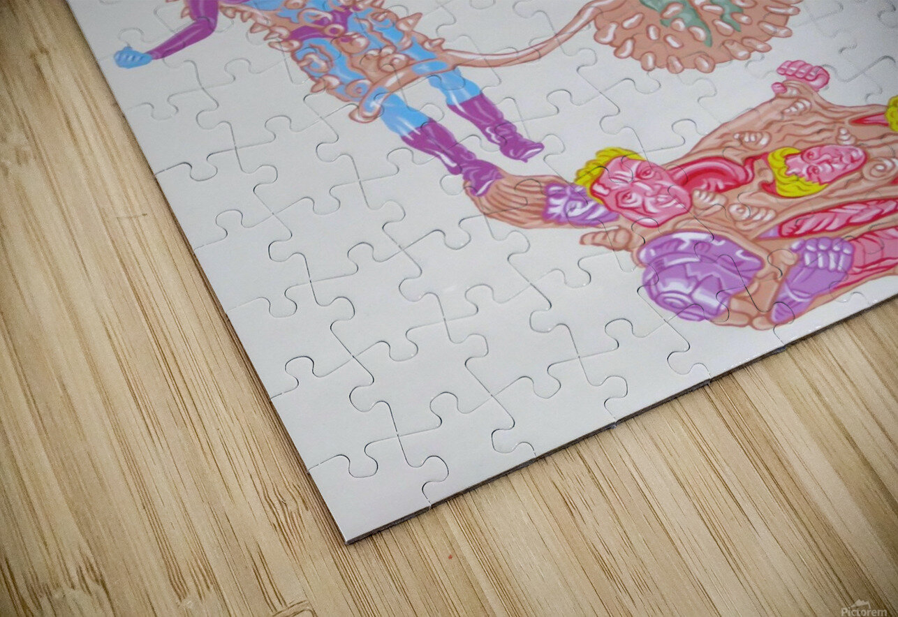 Unlike traditional printing — This artwork is produced with by sublimation print. We utilize heat and pressure to transfer images directly into the surface of the Puzzle, bonding your image to the substrate at the molecular level.